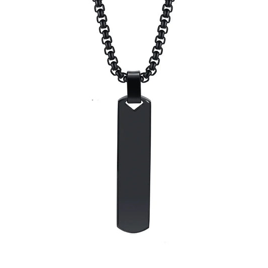 Make a statement with our Initial Bar Necklace for Men. This stylish piece features a thick geometric vertical bar pendant, customizable with initials from A-Z, perfect for adding a personal touch to your accessory collection.