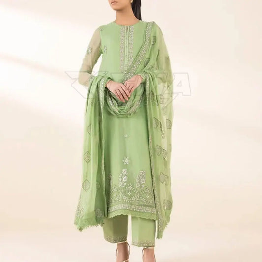 Design: Soft green color adorned with delicate embroidery, offering a fresh and graceful look.