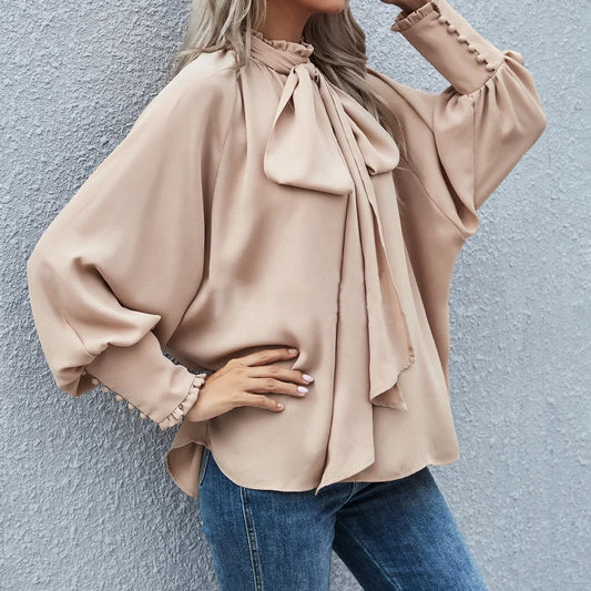 Design: Long sleeves with a stand-up collar and a stylish bow tie detail.