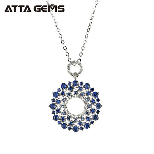 Vibrant Blue Sapphire: The 1.9mm synthetic blue sapphire adds a captivating touch of color, symbolizing wisdom and tranquility, while beautifully enhancing your neckline.