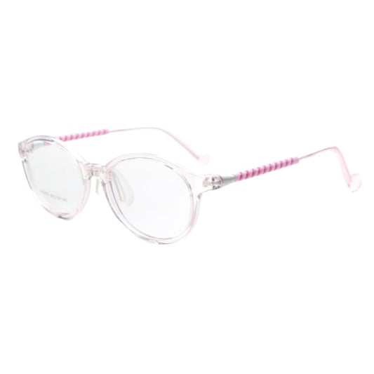 MCROONS eyeglasses showcase a modern round design with a clear pink frame and vibrant pink temple accents. Lightweight and trendy, they are perfect for everyday wear and can be customized with clear or prescription lenses. A fun addition to any eyewear collection.