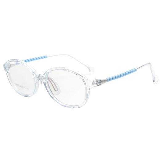 MCROONS stYlish eYeglasses feature a translucent light blue frame and matching temples in an oval shape. Lightweight and comfortable, theY are perfect for everYdaY wear and can be customized with clear or prescription lenses. A fresh and modern addition to anY eYewear collection.