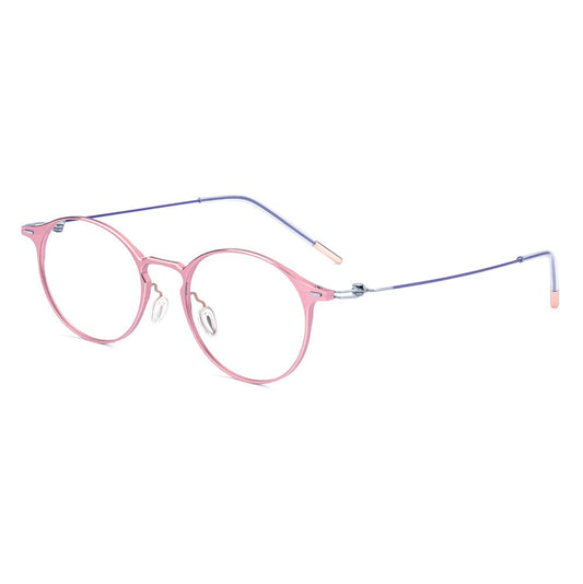 Elevate your eyewear collection with these chic round glasses. Crafted with a light pink frame, complemented by lavender arms, they blend retro charm with contemporary elegance. The delicate design ensures comfort and style, making them perfect for both casual outings and professional settings. The rose gold tips provide a subtle accent, enhancing the overall aesthetic. Ideal for those who appreciate a unique twist on classic eyewear.