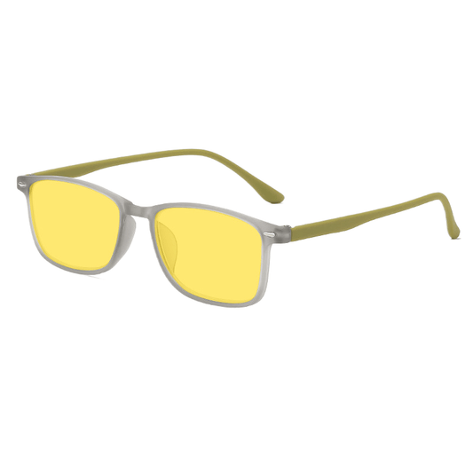 MCROONS sunglasses feature a contemporary rectangular design with a translucent dark gray frame, enhanced by striking neon yellow accents on the temples. The clear lenses provide excellent visibility and protection. Perfect for those who appreciate a modern style with a sporty edge, they combine practicality with eye-catching aesthetics. Their comfortable fit makes them suitable for everyday wear and active pursuits, offering both functionality and flair.