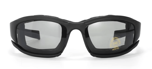 MCROONS sunglasses feature a robust wraparound design with a matte black frame that exudes a sleek and sporty aesthetic. The clear lenses provide excellent visibility and protection. Enhanced with a comfortable strap in gray, they are well-suited for active sports and outdoor adventures. Their secure fit and lightweight construction make them an ideal choice for individuals seeking dependable eyewear for high-energy activities.