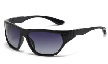 MCROONS sunglasses feature a bold rectangular design in a glossy black frame, providing a sleek and modern aesthetic. The clear lenses offer essential visibility and protection. Ideal for both casual and active use, these sunglasses combine style with practicality. The adjustable strap ensures a comfortable and secure fit, making them a great choice for those who engage in various outdoor activities and need reliable eyewear.