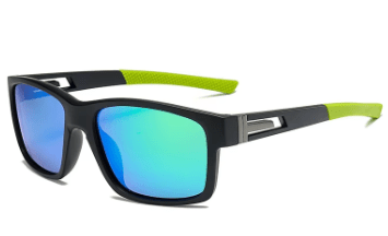 MCROONS sunglasses feature a sleek matte black frame enhanced by vibrant green accents, creating a sporty and modern look. The mirrored blue-green lenses provide excellent UV protection while adding a touch of style. Perfect for outdoor activities or casual wear, these sunglasses blend functionality with eye-catching design, making them an essential accessory for those who enjoy an active lifestyle.