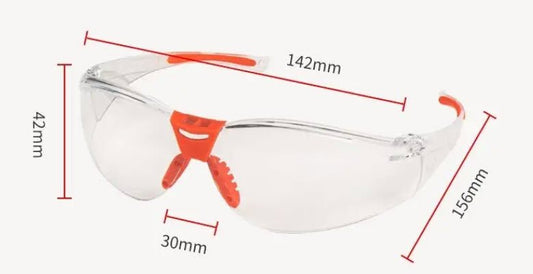 MCROONS glasses feature a sleek, modern design with a transparent frame and vibrant orange accents. The lightweight construction ensures comfort during extended wear, while the wrap-around shape provides excellent visibility and protection. Ideal for both safety and style, they are suitable for various activities, including sports and outdoor work. The clear lenses offer unobstructed vision and are perfect for environments where eye protection is essential.