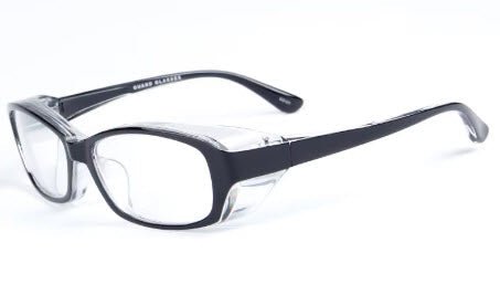 MCROONS Protective Glasses combine; black frame and ; lenses for comfort, glare reduction, and UV protection, offering effective coverage in a modern design.