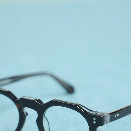 MCRRONS glasses feature a stylish, chunky frame with a unique angular design, ideal for both prescription lenses and fashion eyewear. The combination of modern aesthetics and classic elements makes them suitable for various occasions. They are lightweight and comfortable, with subtle detailing on the temples that adds a touch of elegance. Perfect for those looking to make a statement while enjoying functionality.