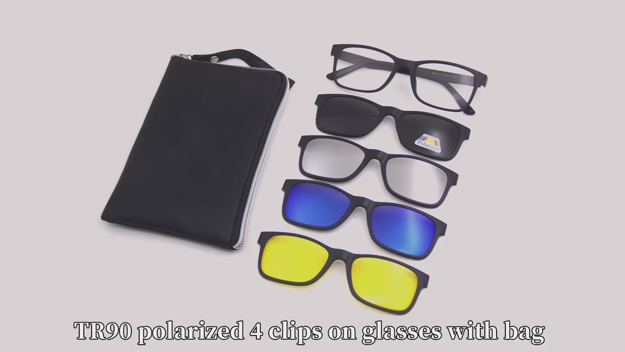 MCROONS product includes a stYlish black frame available in both round and oval shapes, accompanied By a sleek black pouch for storage. The set features four clip-on lenses in Yellow, blue, brown gradient, and dark graY, allowing users to easilY adapt to different lighting conditions and personal stYles. The lightweight design ensures comfort, making it perfect for everYdaY wear and various occasions. The chic aesthetic adds a fashionable element to anY look.