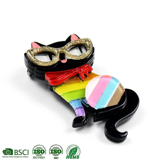 Charming Cat BroochShow off your playful side with our Charming Cat Brooch! This adorable accessory features a stylish cat adorned with vibrant rainbow colors and trendy glasses, perfect for animal lovers and those who enjoy unique fashion statements.Key Features: